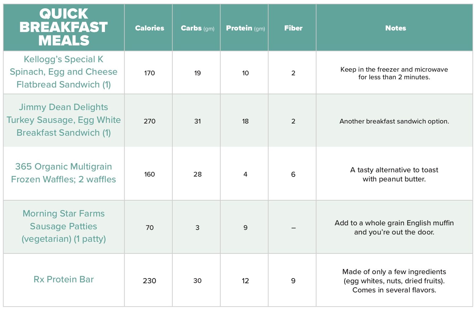 When you don’t have time for your usual breakfast, it’s good to have some options for a quick grab-and-go breakfast in your freezer or pantry. Here are some options that will give you the protein you need to start your day, yet are still low in overall calories.